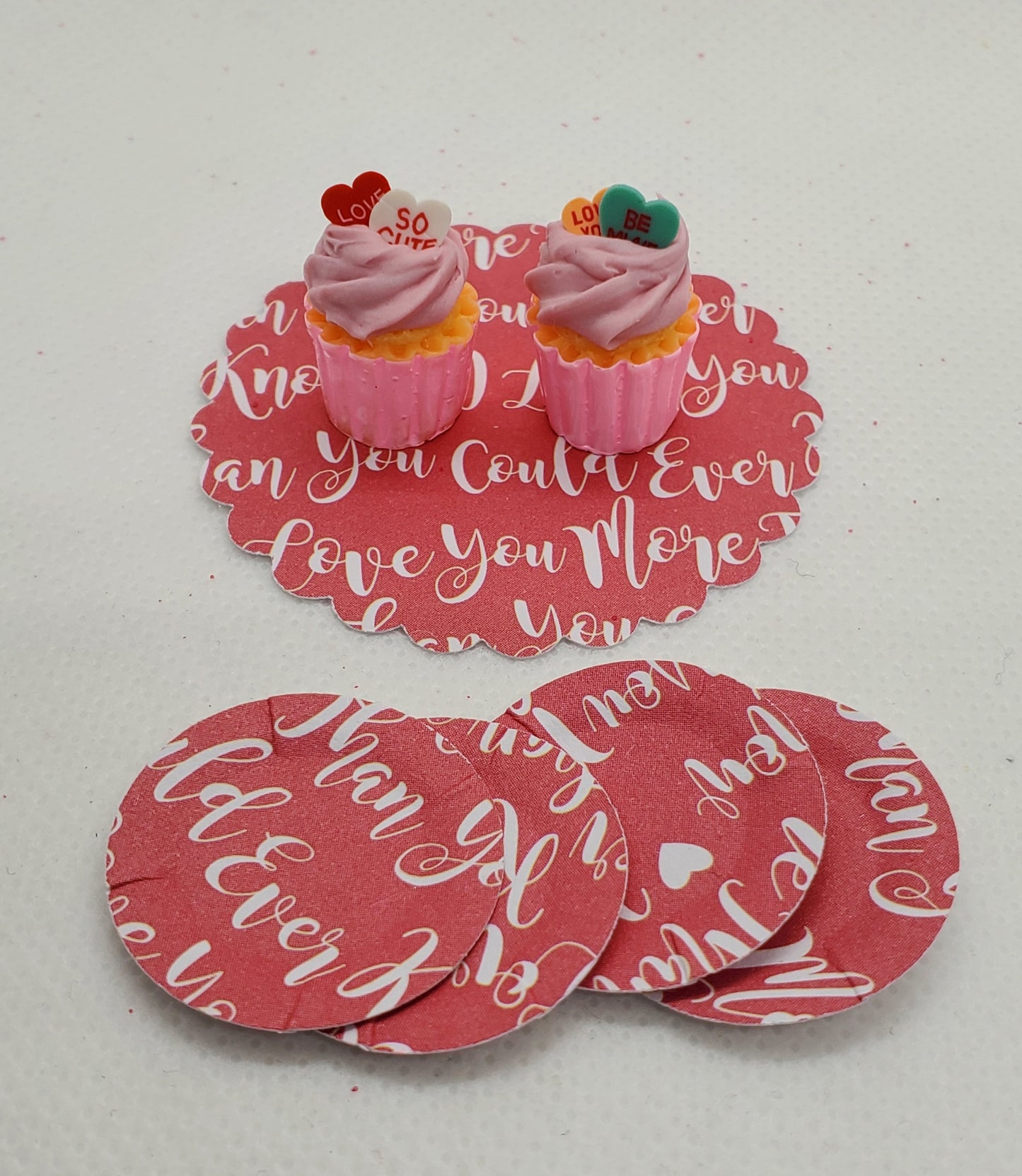 These mini cupcakes come in a set of 2.  Either with Hearts on top or conversational hearts.
