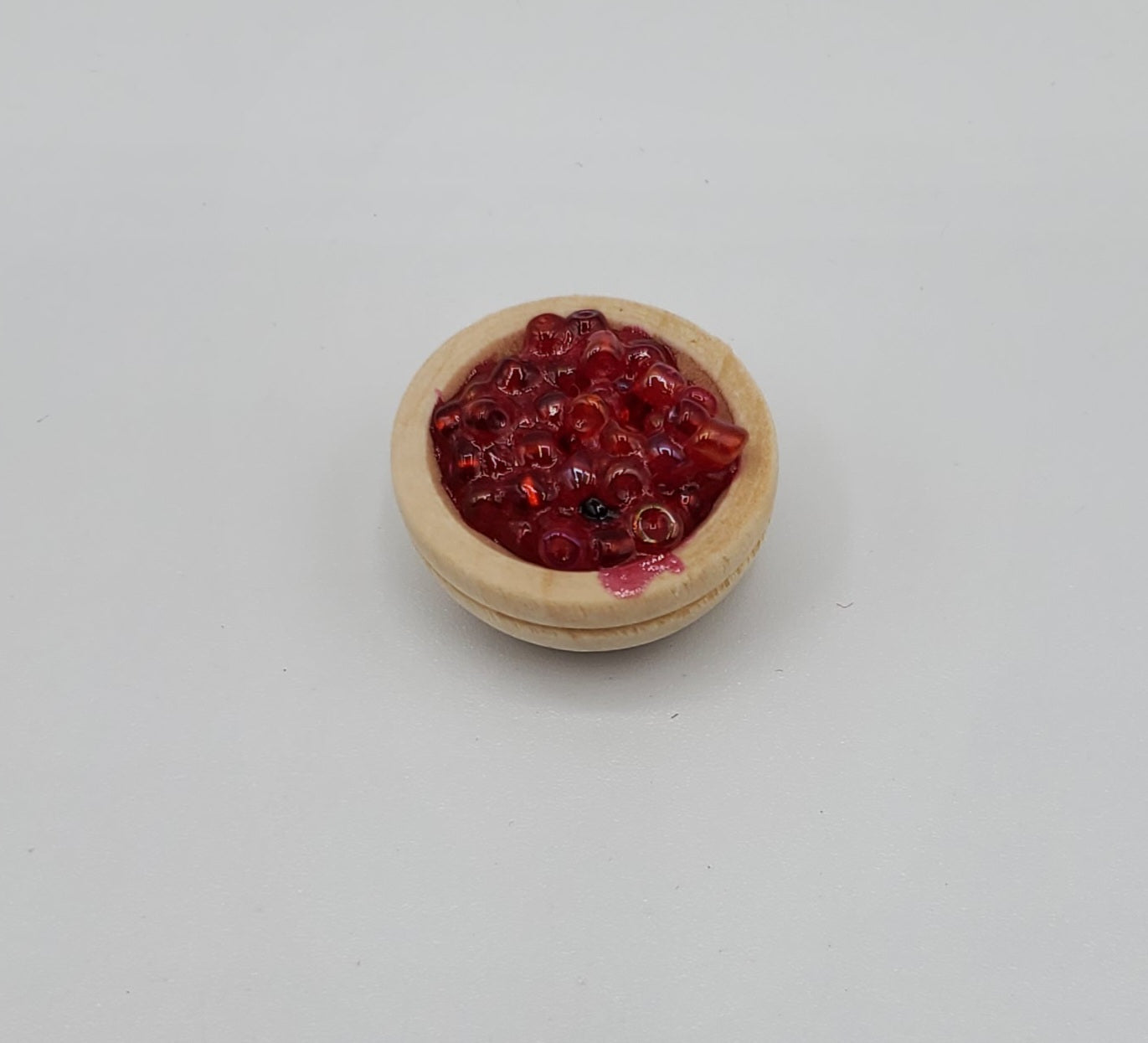 Each miniature cranberry sauce for dolls is uniquely crafted with attention to detail. The vibrant color mimics that of real cranberry sauce, adding a touch of authenticity to your dollhouse setup. It's not just a feast for the eyes; it's a statement of quality and craftsmanship.
