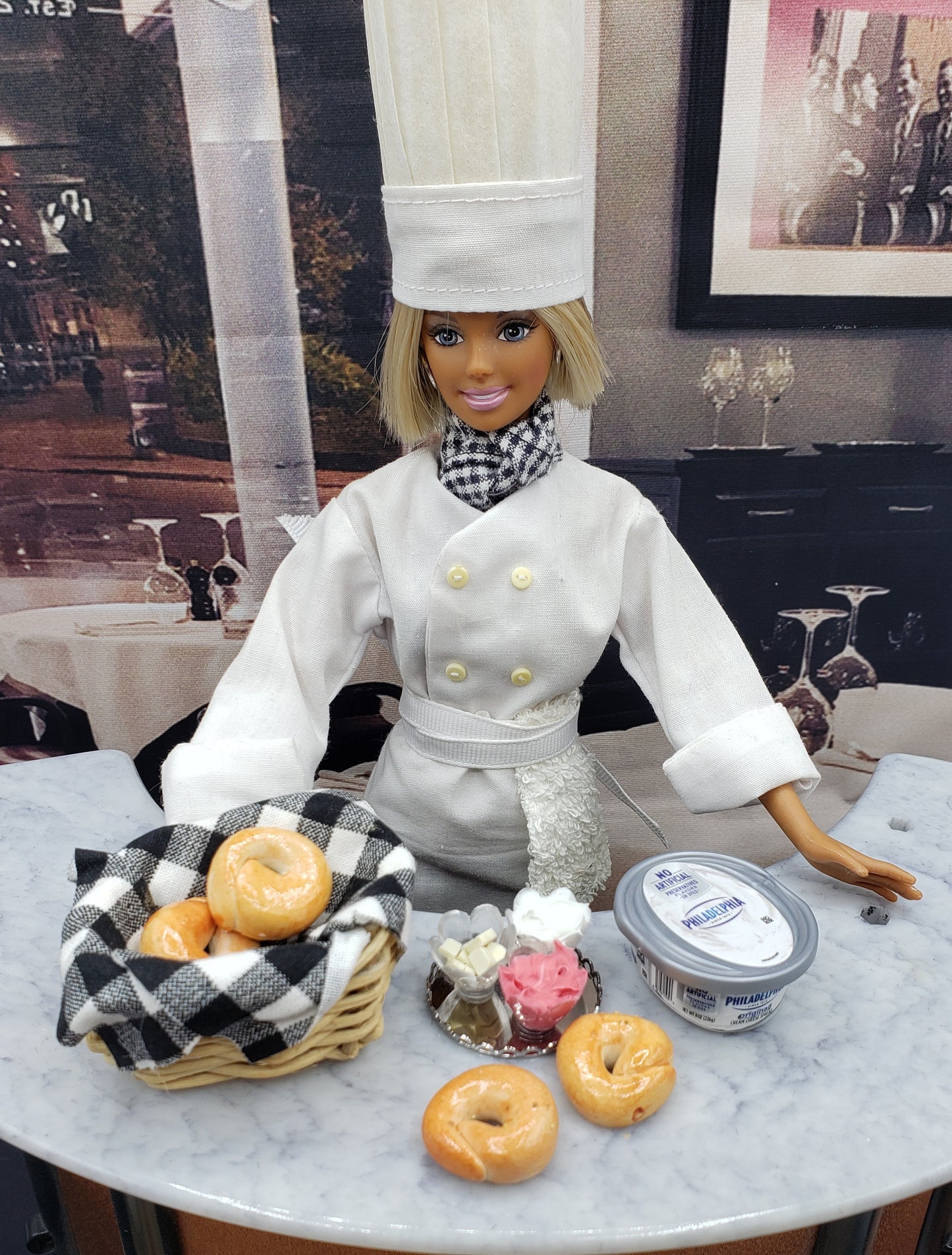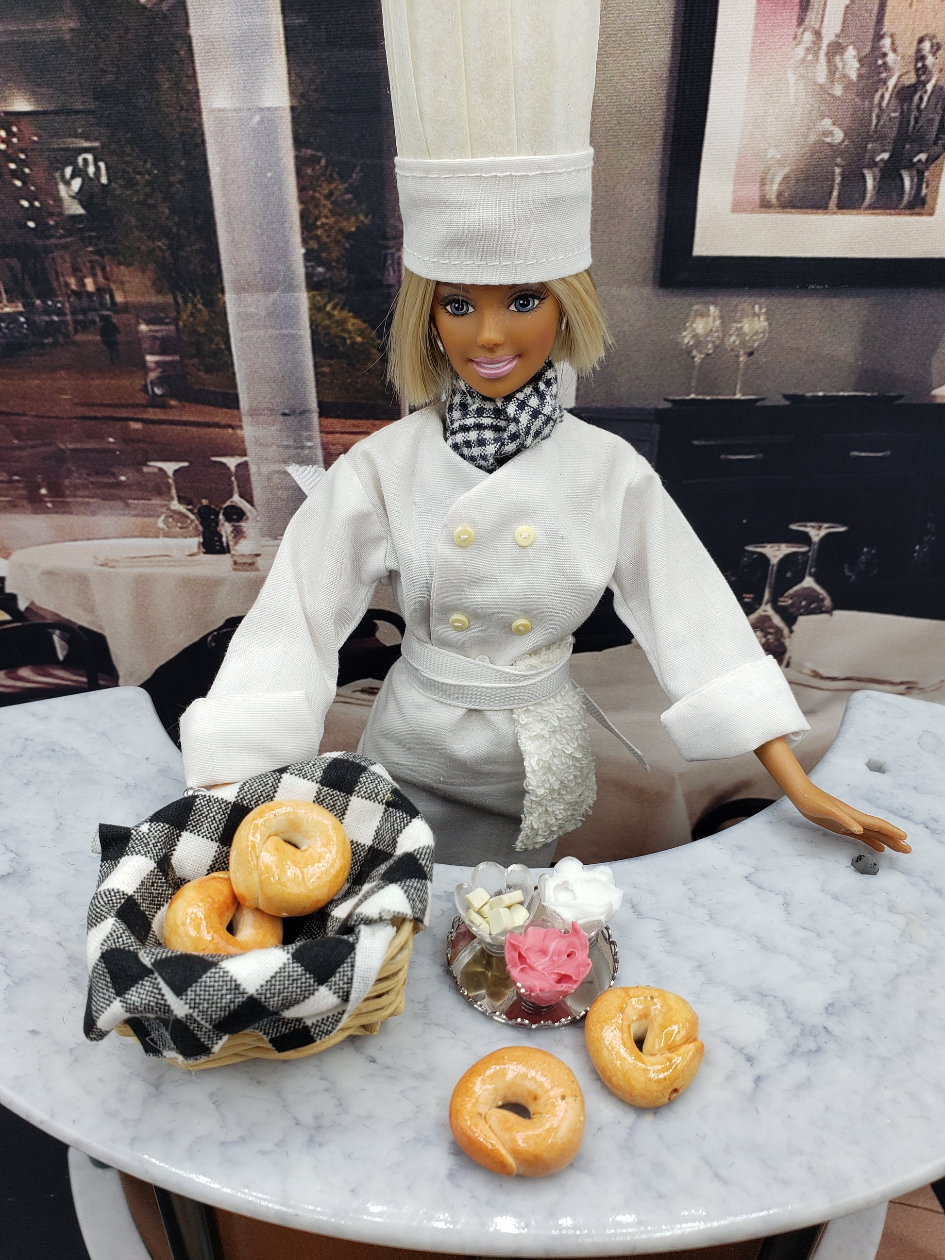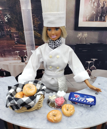 Bring a taste of morning delight to your dollhouse with our miniature bagel basket. Perfectly crafted for Barbie size dolls, this delightful set by Chef Gina's® Mini Food includes charmingly realistic details. Each bagel in this miniature bagel basket is designed to mirror life-sized versions.