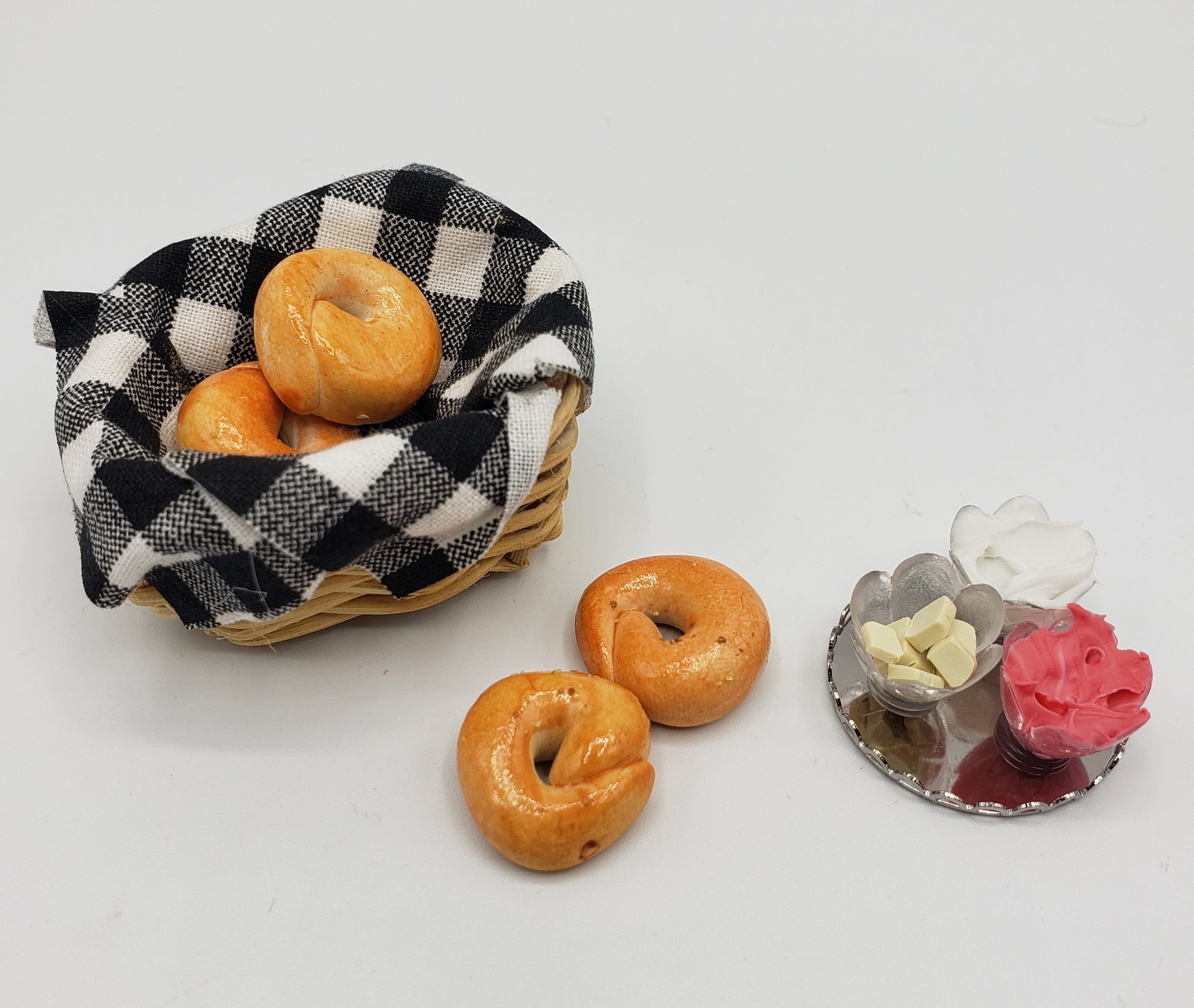 Chef Ginas Miniature Bagel Basket With Spreads Doll Food